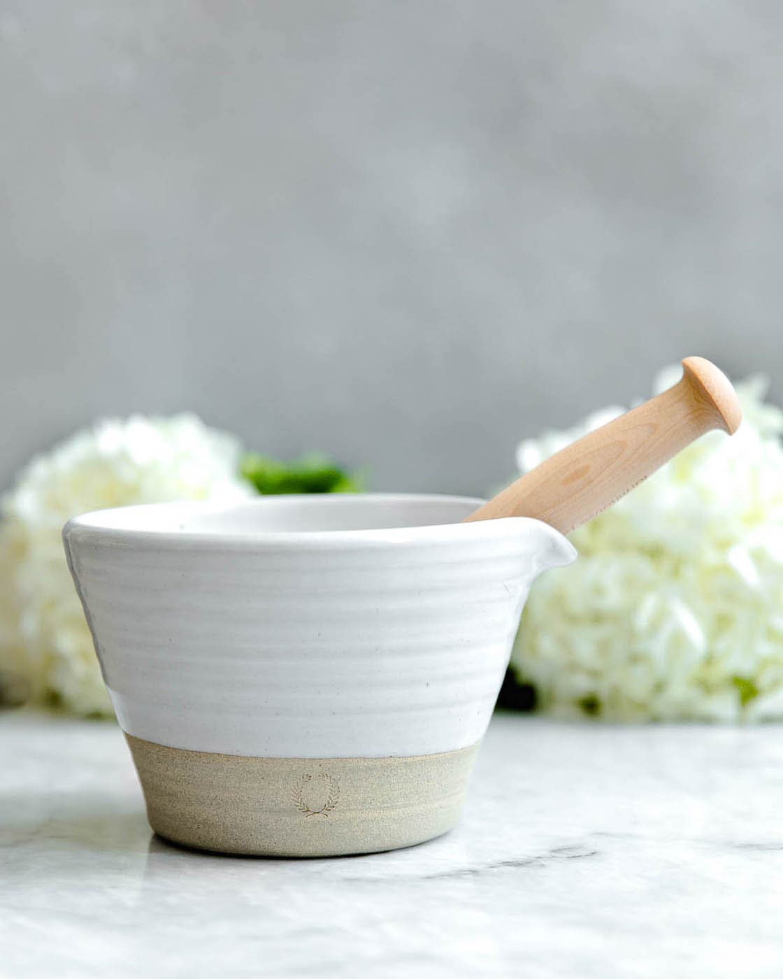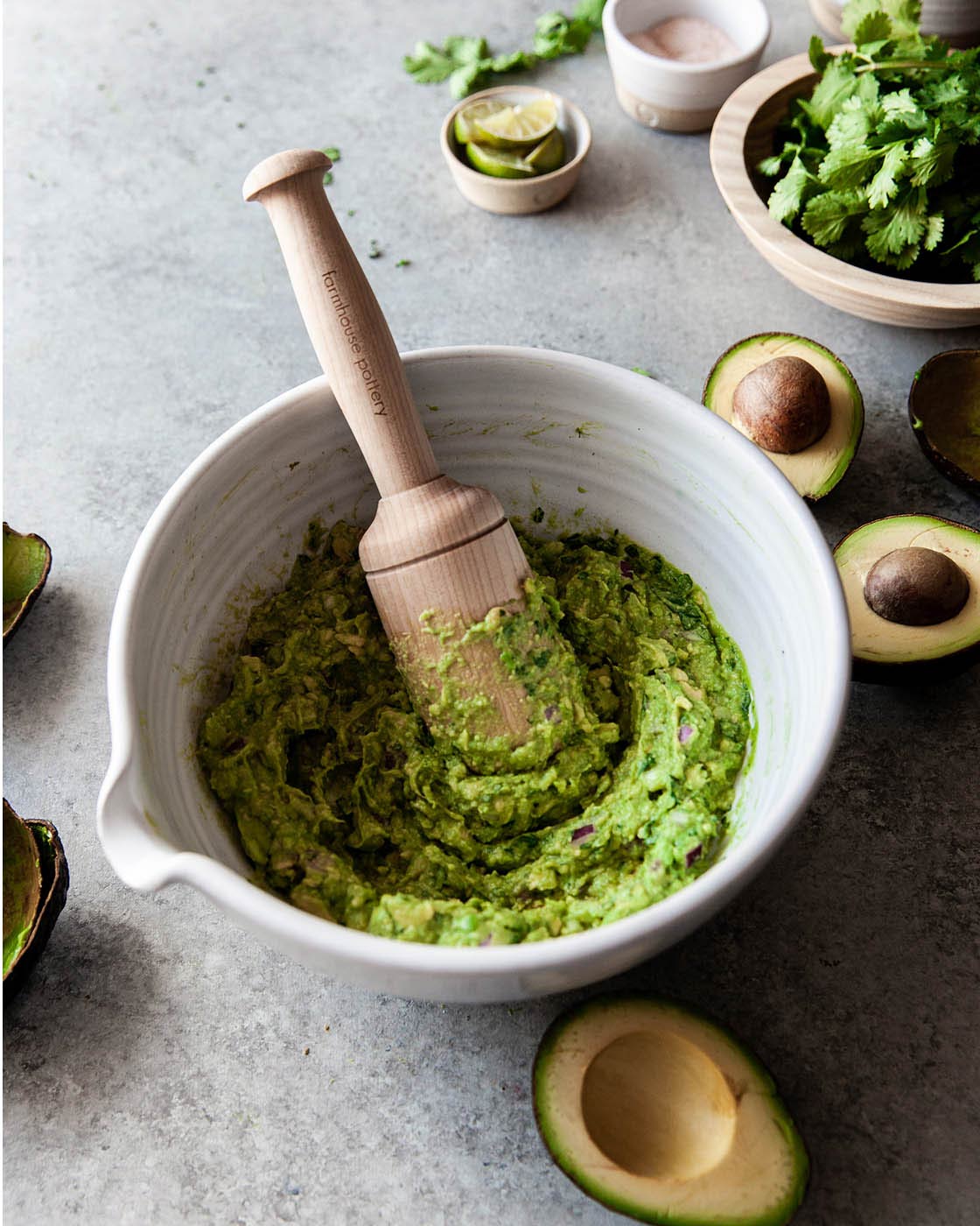 This modern stoneware piece has proven to be a multi-purpose tool in any farmhouse kitchen. Mash up homemade guacamole, muddle fruit for a cocktail or mix up your favorite creation.